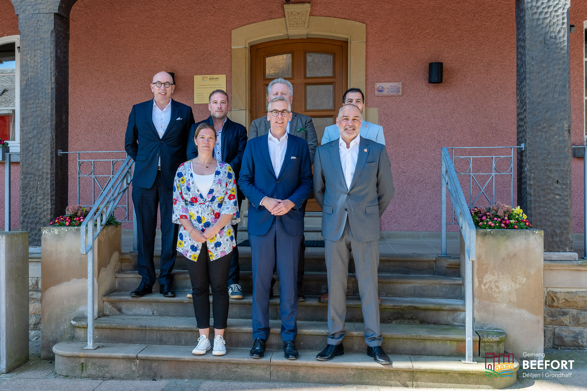 Eng Delegatioun vum Inneministère mam Inneminister Léon Gloden un der Spëtzt koum gëschter an der Mëttesstonn op Beefort op eng Aarbechtsvisitt mam Schäfferot zesummen. Am Virfeld vun dësem Austausch krute si d’Presentatioun, déi zwee Deeg virdrun an der Biergerversammlung virgestallt gouf, geschéckt an esou war jiddereen op dem leschte Stand vun der aktueller Situatioun an der Gemeng Beefort.