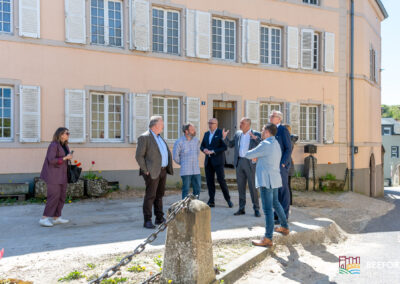 Bei guddem Wieder gouf sech déi verschidde Projeten op der Plaz ugekuckt. Iwwert de Generatiounsgaart goung et an d’Maison Dussier, eriwwer op de Chantier vun der fréierer Distillerie an herno bei de Centre d’accueil vum Natur- a Geopark Mëllerdall mat engem kuerzen Ofstiecher an d’Ausstellung.