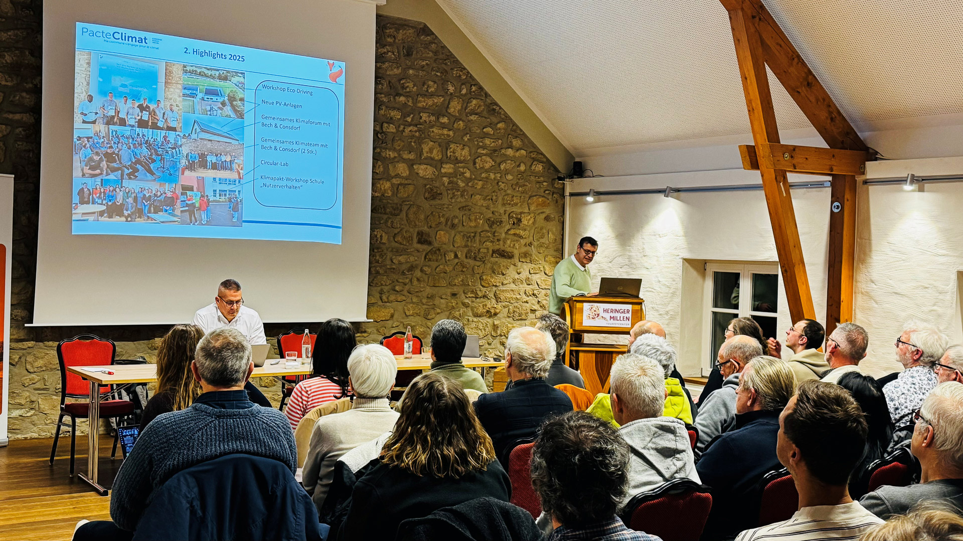 Wie bereits 2024/2025 hatten die Klimateams der Gemeinden Befort, Heffingen und Waldbillig ihre Bürger*innen sowie Vertreter*innen von Vereinen und Betrieben zum mittlerweile zweiten gemeinsamen Klimaforum 2025/2026 im Rahmen des Klimapakts 2.0 eingeladen. Zu diesem Zweck organisierten die drei Gemeinden erneut eine Informations- und Partizipationsveranstaltung, die am 3. Februar im „Kärespeicher“ der Heringermillen stattfand und mit knapp 50 Teilnehmenden sehr gut besucht war.